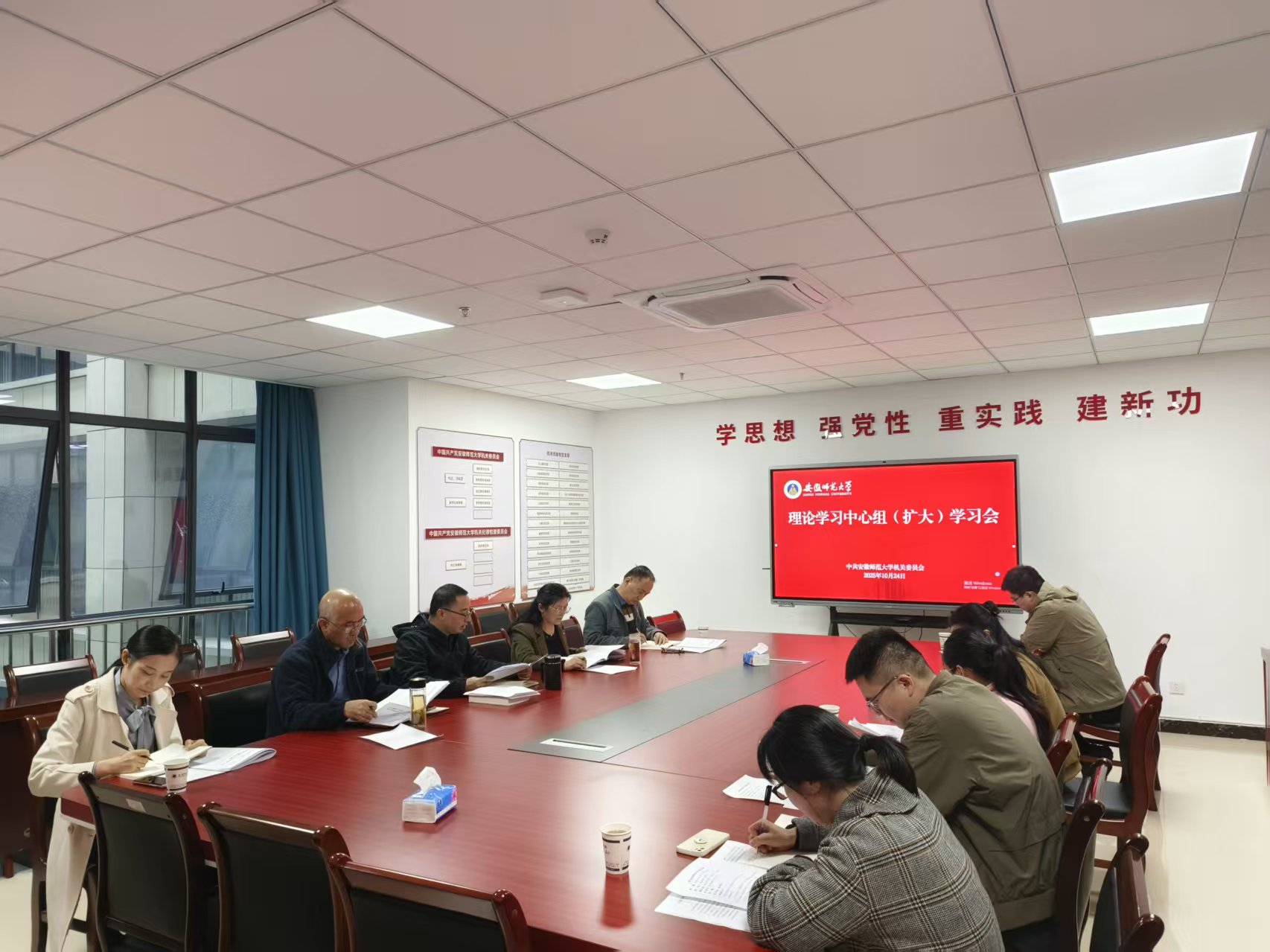 10月24日下午,机关党委于文典楼634会议室召开理论学习中心组(扩大)学习会,机关党委委员、纪委委员、部分党支部书记参加会议。会议由机关党委书记汪俊武主持。