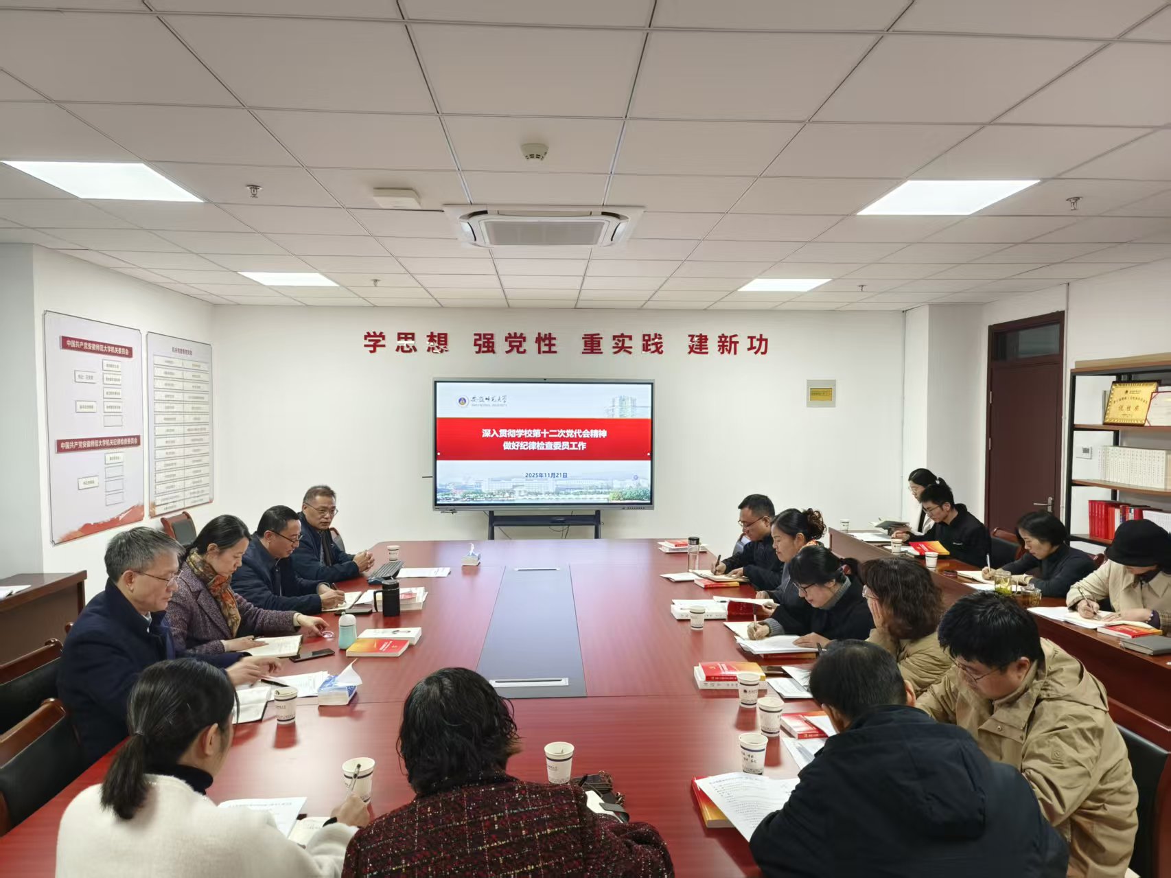 2025年11月21日下午,机关党委在文典楼A634会议室召开党委理论学习中心组(扩大)学习会,机关党委委员、纪委委员及各党支部纪检委员参会,机关党委书记汪俊武主持会议。