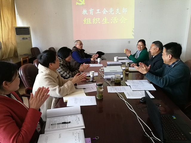 会上,陈书记从支部标准化建设的要求方面肯定了校工会支部的工作成绩,并强调政治学习、作风建设、担当作为和围绕中心的重要性。赵红主席传达了《关于召开2018年度基层党组织生活会和开展民主评议党员的通知》精神和要求,并向各位党员报告了校工会2018年的工作情况,牧运前书记代表支部向大家报告了支部2018年的党建情况。他指出:2018年支部工作在全体机关支部中走在了前列。由于独立建立了支部,增加了大家评优的机会,同时也增加了大家的工作量,今后也会严格按照支部标准化建设的要求来开展支部的活动和工作。