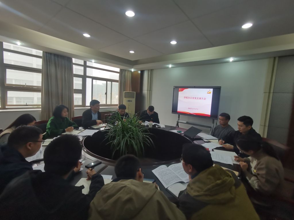11月17日,学校办公室党支部召开支部党员大会,集中学习党的二十大通过的《中国共产党章程(修正案)》,深入学习贯彻党的二十大精神。学校办公室副主任、党支部书记操伊芬主持会议,全体在职党员参加会议。