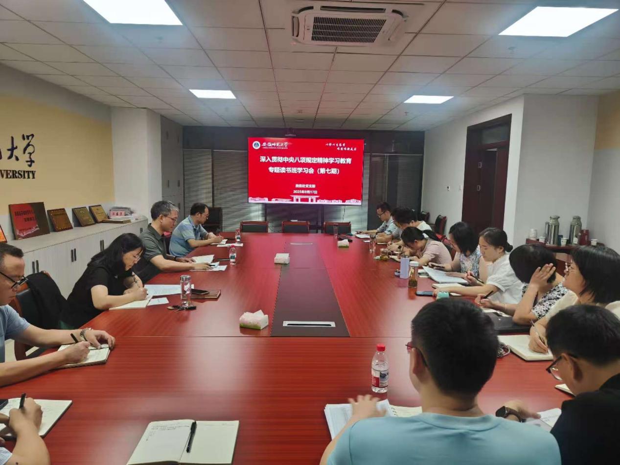 9月17日上午,教务处党支部在花津校区文典楼314会议室开展第七期深入贯彻中央八项规定精神学习教育专题读书班学习会。教务处副处长李汪根、赵冬梅及支部全体党员、入党积极分子参加学习,会议由支部书记崔光磊主持。