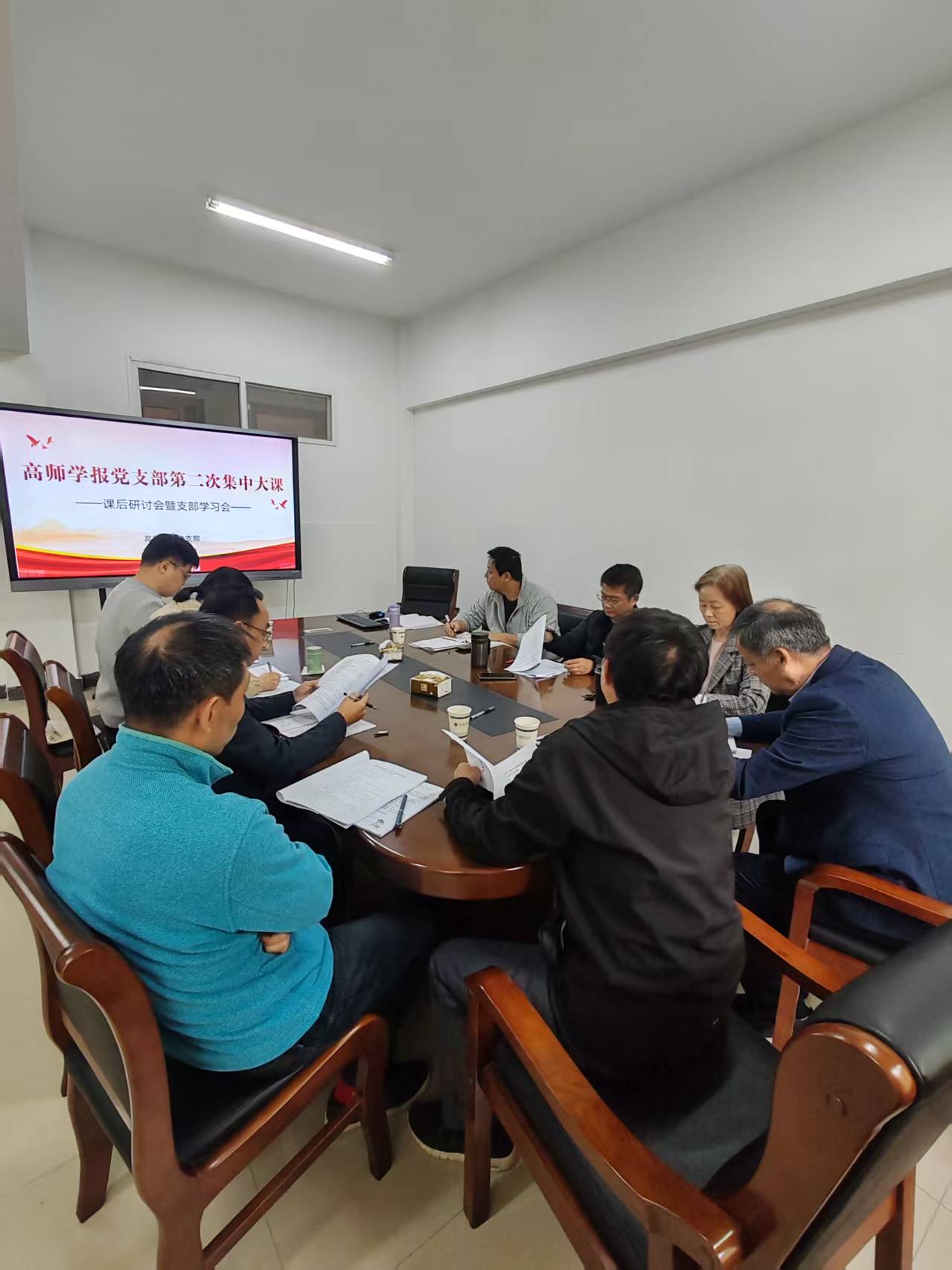 10月29日下午,高师学报党支部开展党员基本培训第二次集中大课课后研讨会暨支部学习会,支部全体党员参加,会议由支部书记台启权主持。