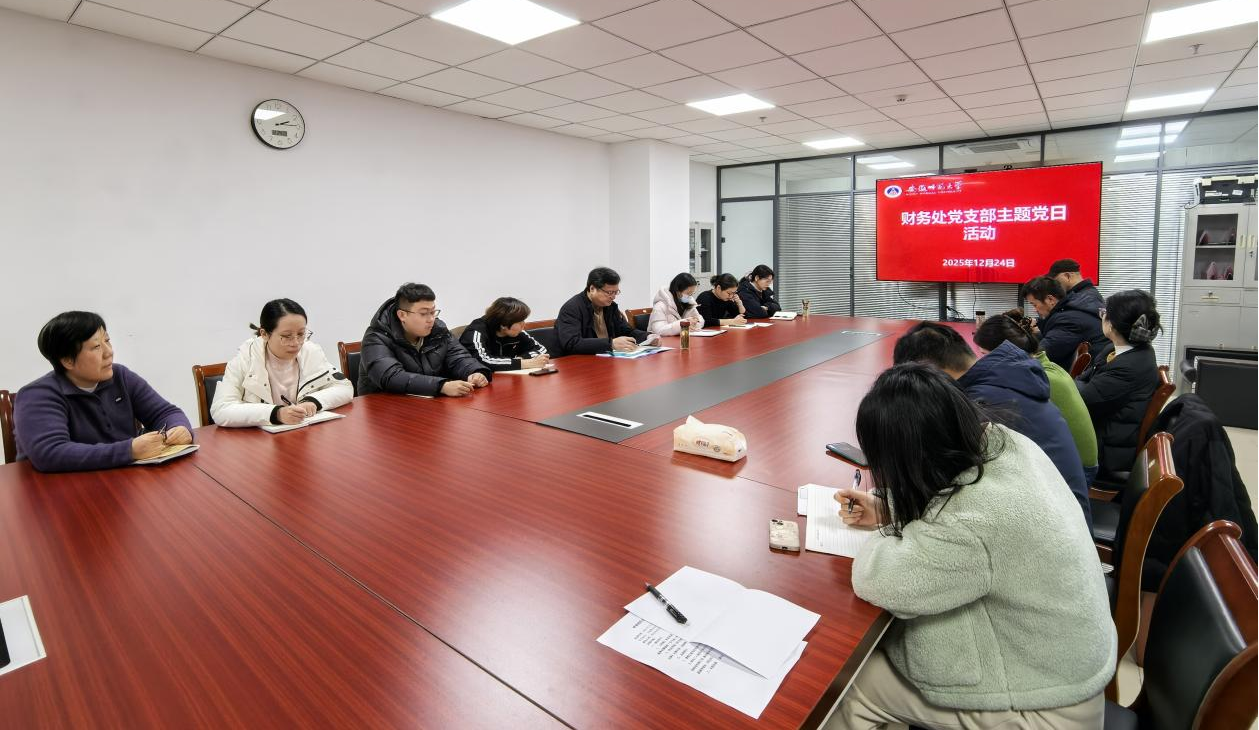 2025年12月24日,财务处党支部在文典楼A414会议室召开专题学习会,并开展专题党课。会议由支部副书记周玉柱主持。