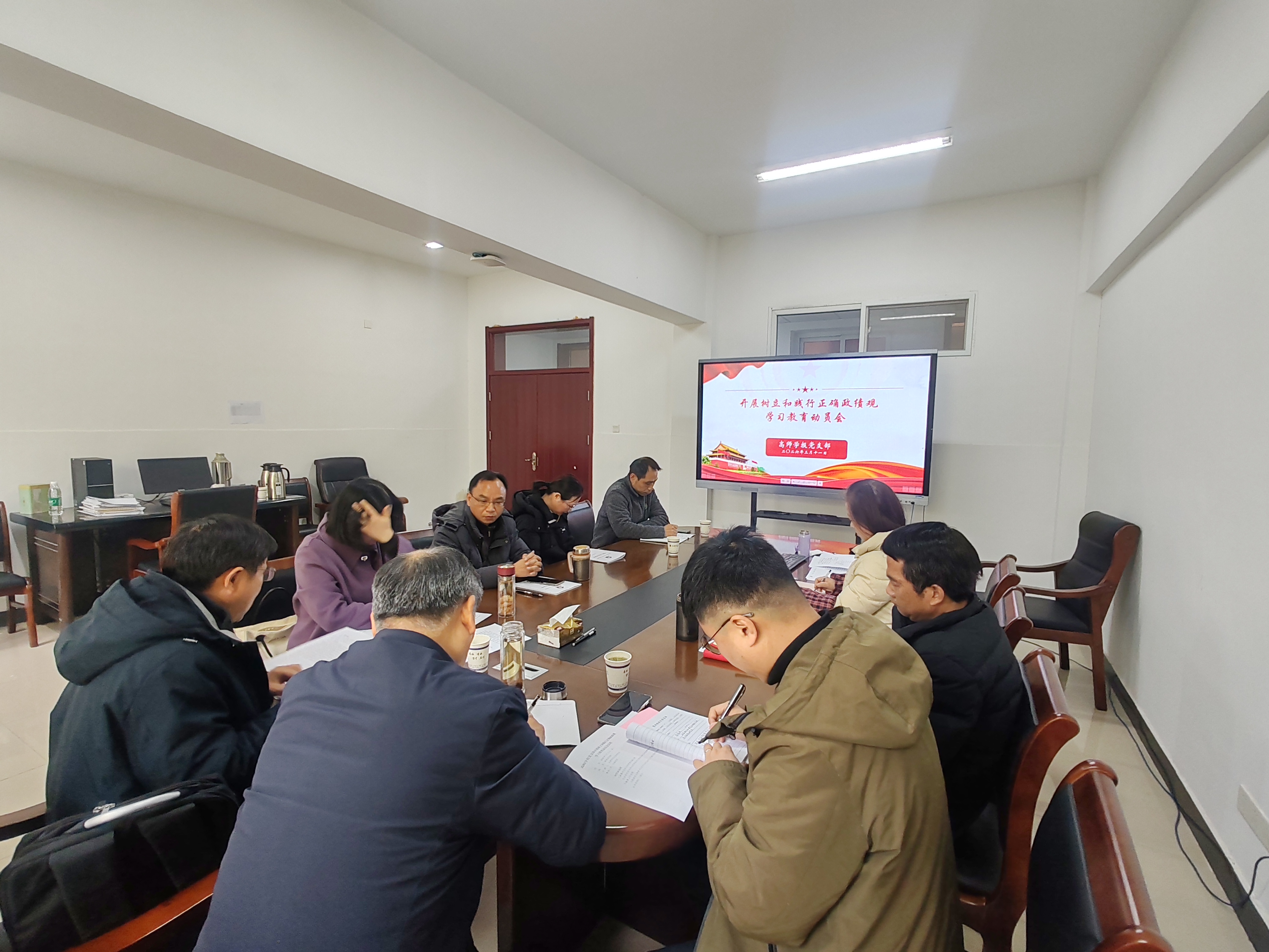 3月11日上午,高师学报党支部开展树立和践行正确政绩观学习教育动员会,会议由支部书记台启权主持,支部全体党员参会。